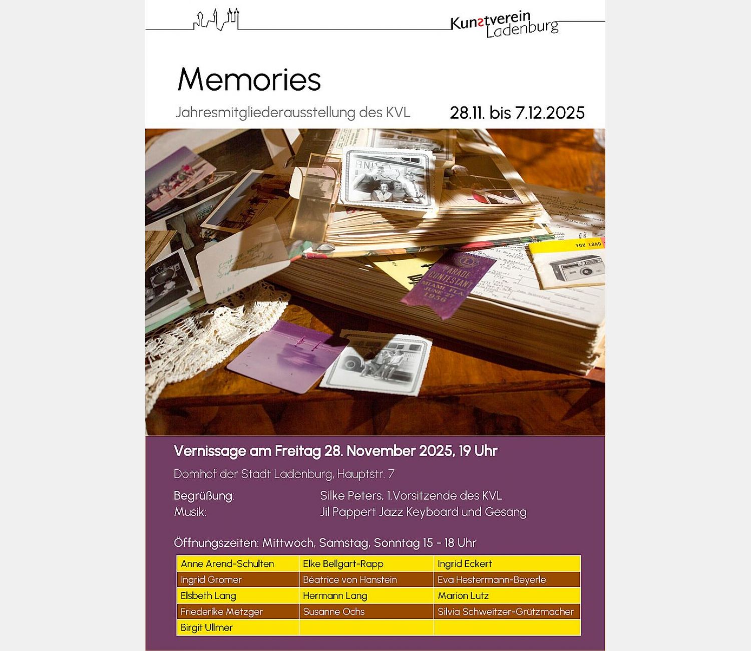 13 Mitglieder das KVL stellen 28.11. bis 7.12.2025 im Domhof in Ladenburg eigene Werke zum Thema Memories aus