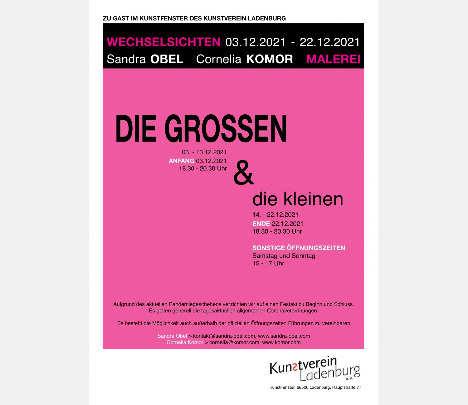 Mit der Ausstellung WECHSELSICHTEN zeigen Sandra Obel und Cornelia Komor nach sechs Jahren wieder gemeinsam ihre Arbeiten im KunstFenster des Ladenburger Kunstvereins. Beide haben gute Erinnerungen an die Zeit in der sie gemeinsam während eines mehrwöchigen offenen Sommerateliers das KunstFenster des KVL eröffnet haben und freuen sich wieder gemeinsam im KunstFenster auszustellen.