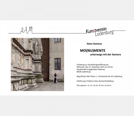 Am Mittwoch, den 21.Dezember 2022, um 18 Uhr wurde die Ausstellung „Mo(nu)mente - unterwegs mit der Kamera“ unseres Mitglieds des Fotografen Hans Assmus eröffnet.