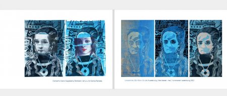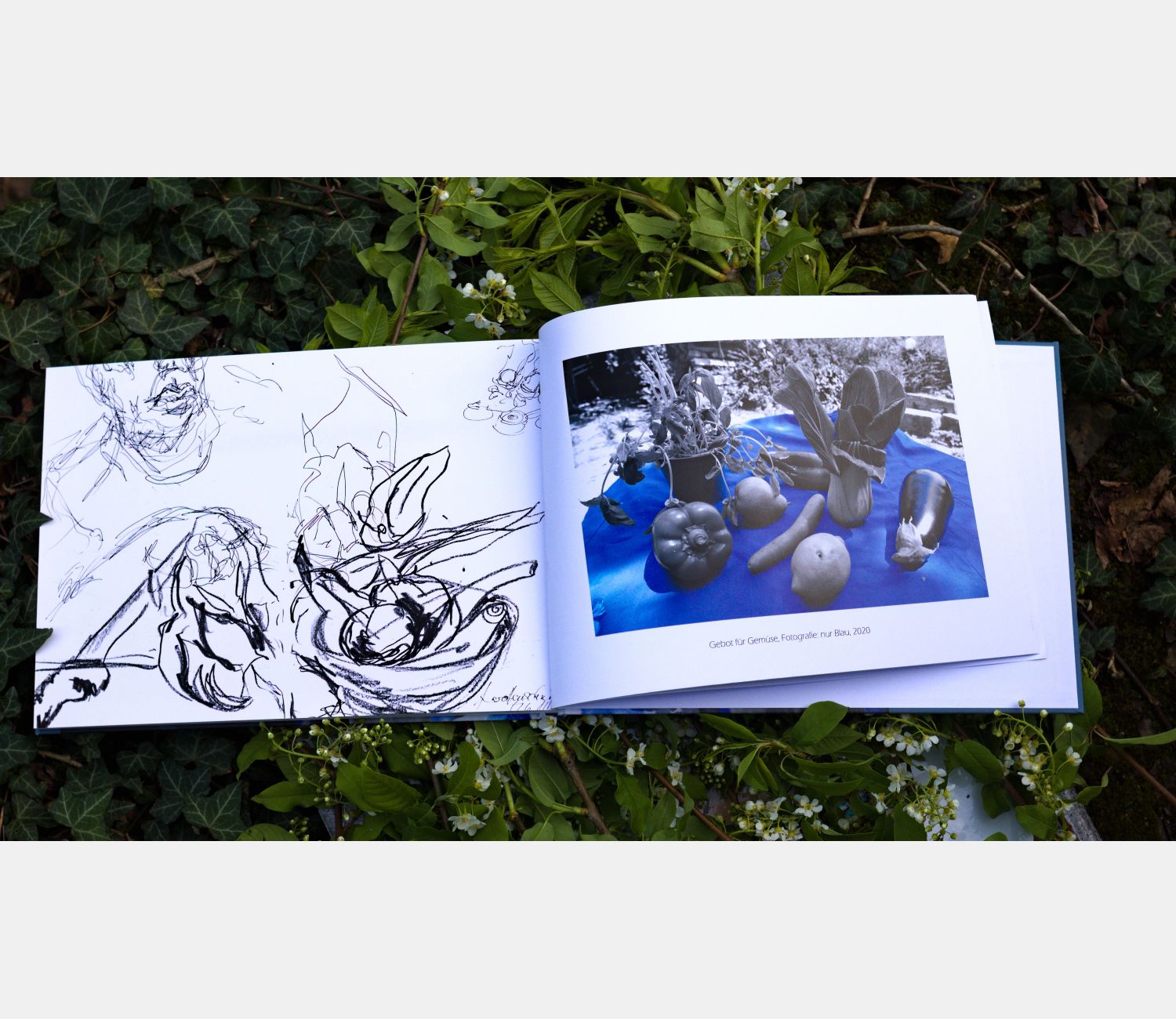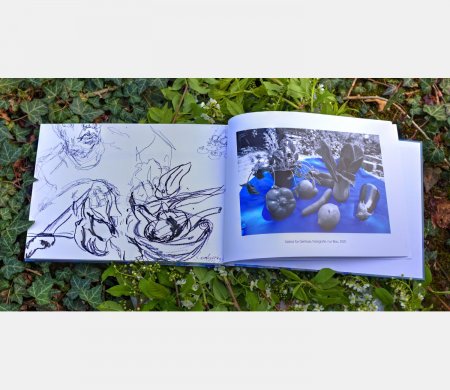 Im Rahmen der Ausstellung Blaustich von und mit Marion Lutz wird auch das von der Künstlerin gestaltete Buch präsentiert. Das Katalogbuch „Blaustich“ ist in der Ausstellung käuflich zu erwerben und zeigt neben den meisten ausgestellten Bildern noch etliche, die im KunstFenster Ladenburg keinen Platz gefunden haben.