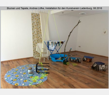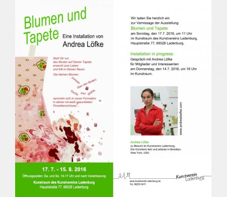 Andrea Löfke ist aus USA zu Besuch im Kunstverein Ladenburg. Ihre Ausstellung Blumen und Tapete lief vom 17.7. bis 15.8.2016, das begleitende Kunst im Gespräch war gut besucht.