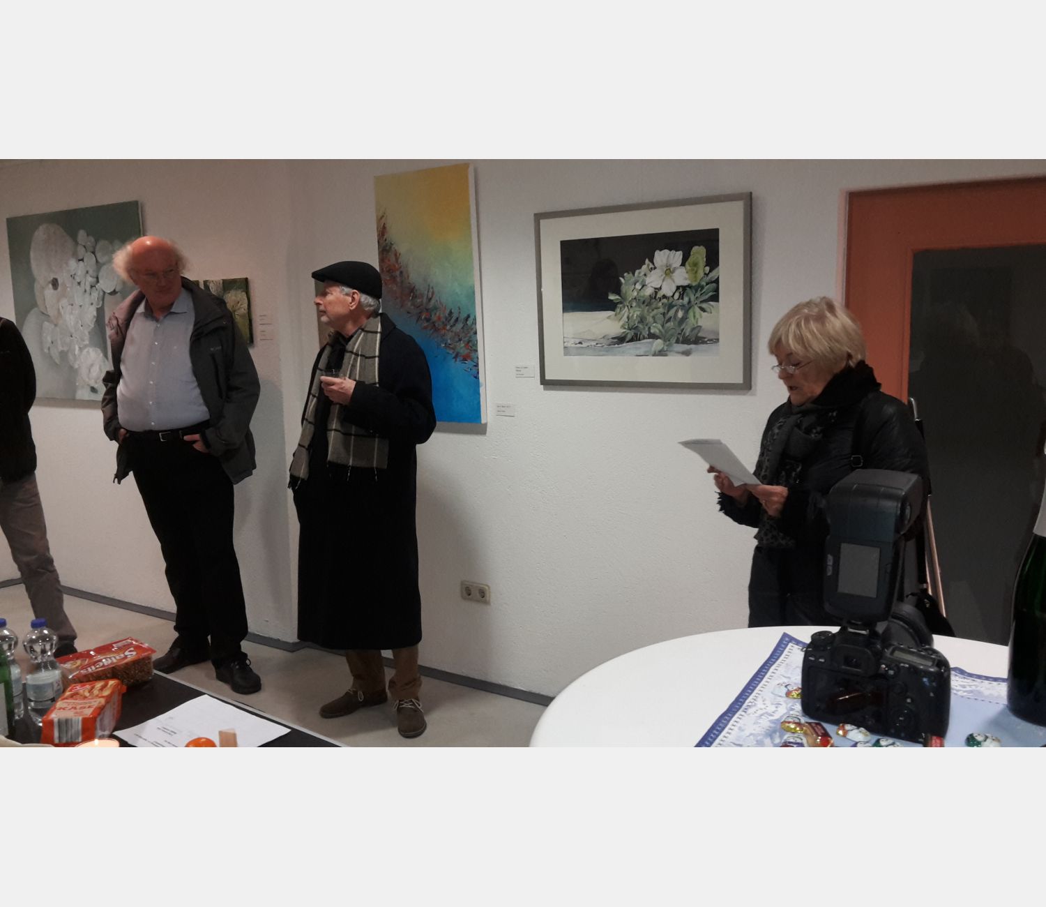 Lassen Sie sich anregen und bezaubern, und schauen Sie durch das große Fenster auf die beleuchteten Bilder von Künstlern der Region.