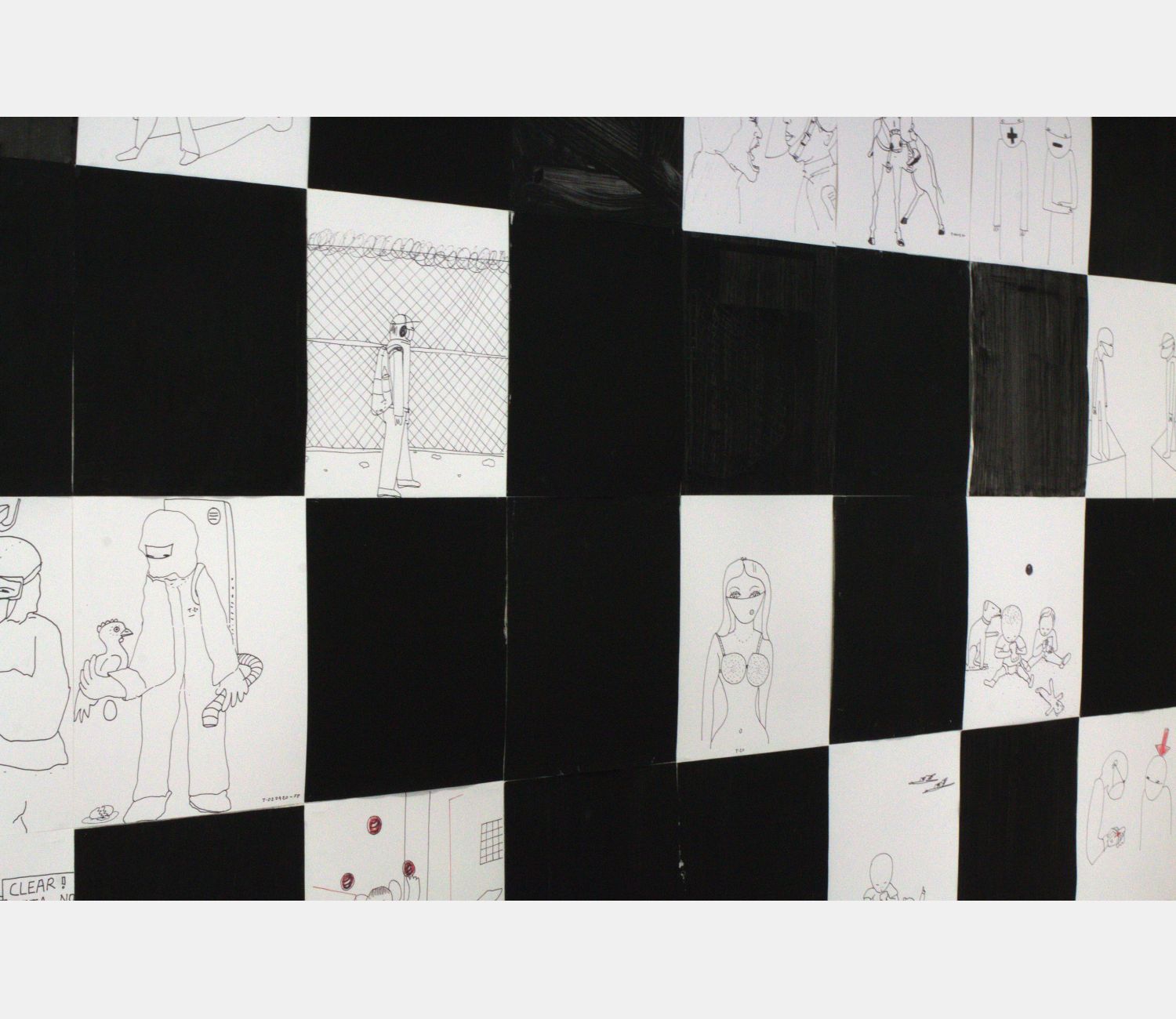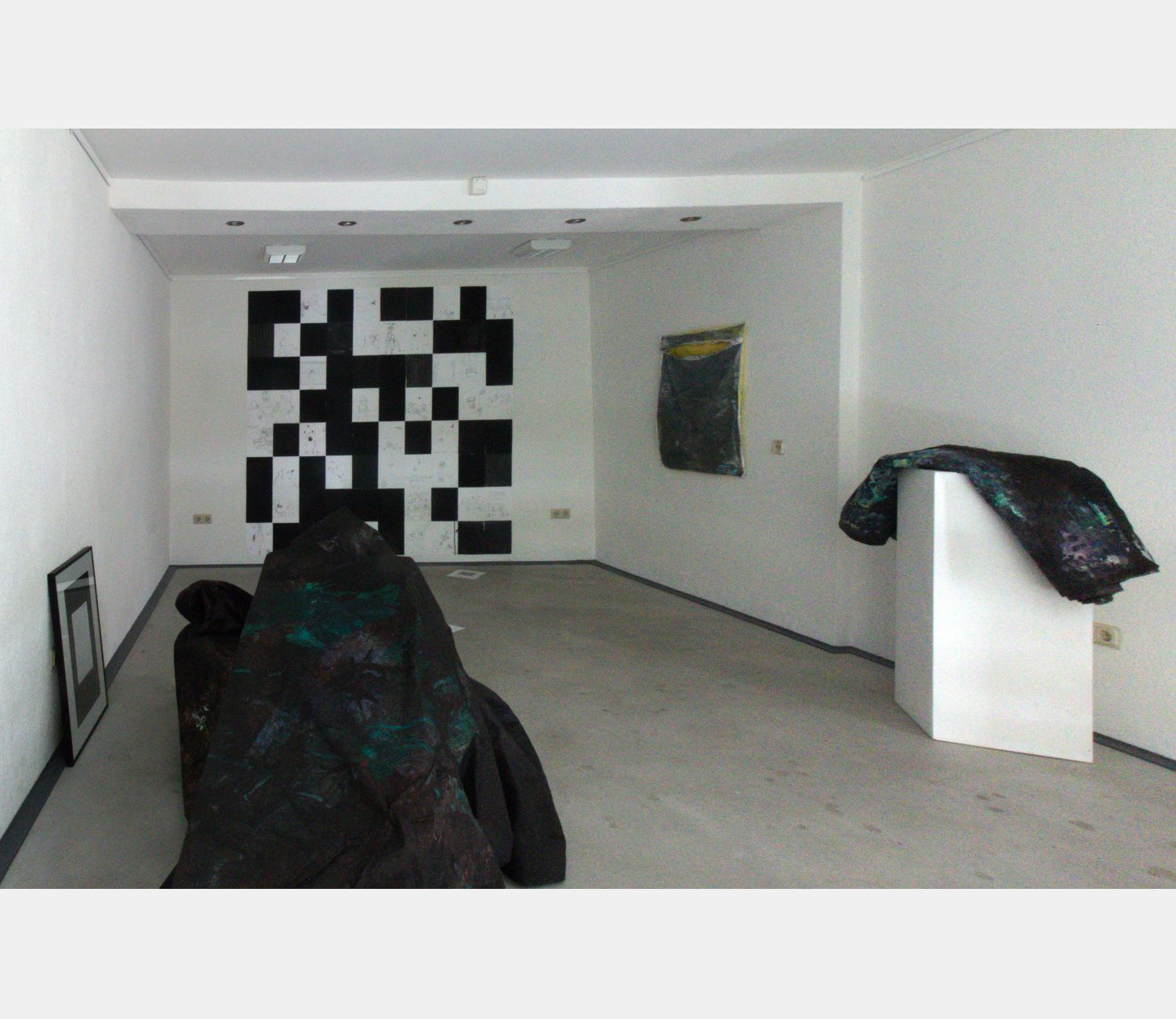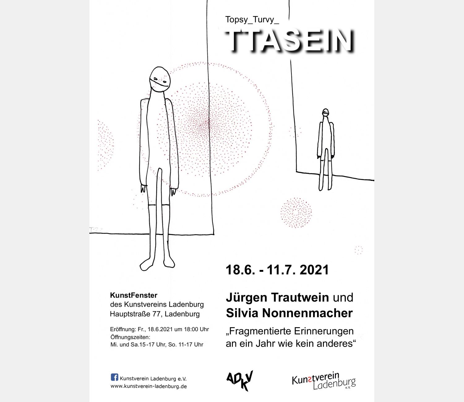 Der Titel TOPSY_TURVY_TTASEIN mutet ungewohnt an: topsy - turvy: durcheinander, chaotisch, auf den Kopf gestellt. TTASEIN: kann man lesen wie "DASEIN", Dasein in schweren Zeiten, im ständigen Spagat zwischen Hoffnung und Verzweiflung, Kunst ist dabei das Floß zur Rettung. Rückwärts gelesen erkennt man "NIESATT",(nie satt).