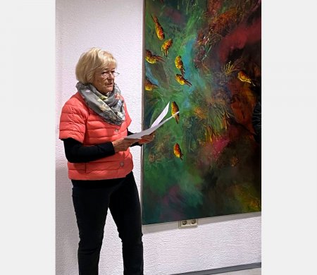 Ulrike Donié malt furios sinnlich und bildgewaltig. Ihre vor allem großformatigen Werke wirken kraftvoll und undurchschaubar zugleich. Die Gemälde zwischen Abstraktion und Gegenständlichkeit zeigen Wesen zwischen Flora und Fauna, und Räume, die Unterwasserwelten genauso wie Dschungel - oder Himmelsbereiche sein könnten, oder alles in einem. In den expressiven Farbkompositionen finden sich Urformen des Lebens zwischen Schöpfungsakt und Weltuntergang. Die Künstlerin, geboren in Saarbrücken, lebt und arbeitet heute nahe Köln und stellt international aus.