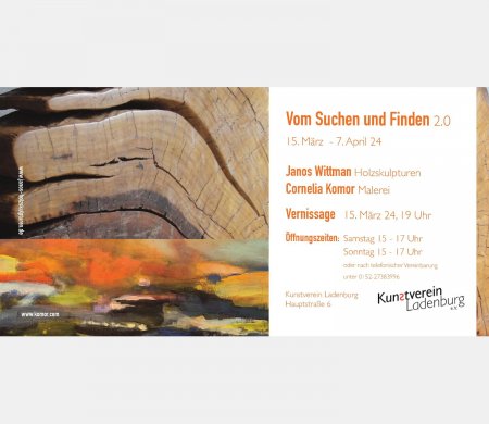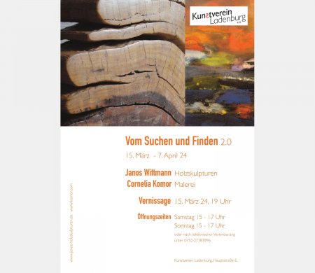 Ab 15.3.2024, 19 Uhr stellen Janos Wittmann und Cornelia Komor ihre Arbeiten unter dem Titel VOM SUCHEN UND FINDEN 2.0 im Kunstverein Ladenburg aus. Beide sind langjährige Mitglieder des KVL und weit über die Grenzen Ladenburgs hinaus bekannt.