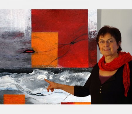 Bei aller Abstraktion erkennt man Assoziationen an Landschaften oder florale Gebilde. Und immer wieder entdeckt man grafische Elemente in Verbindung mit pastösen bis haarfeinen Zeichnungen.